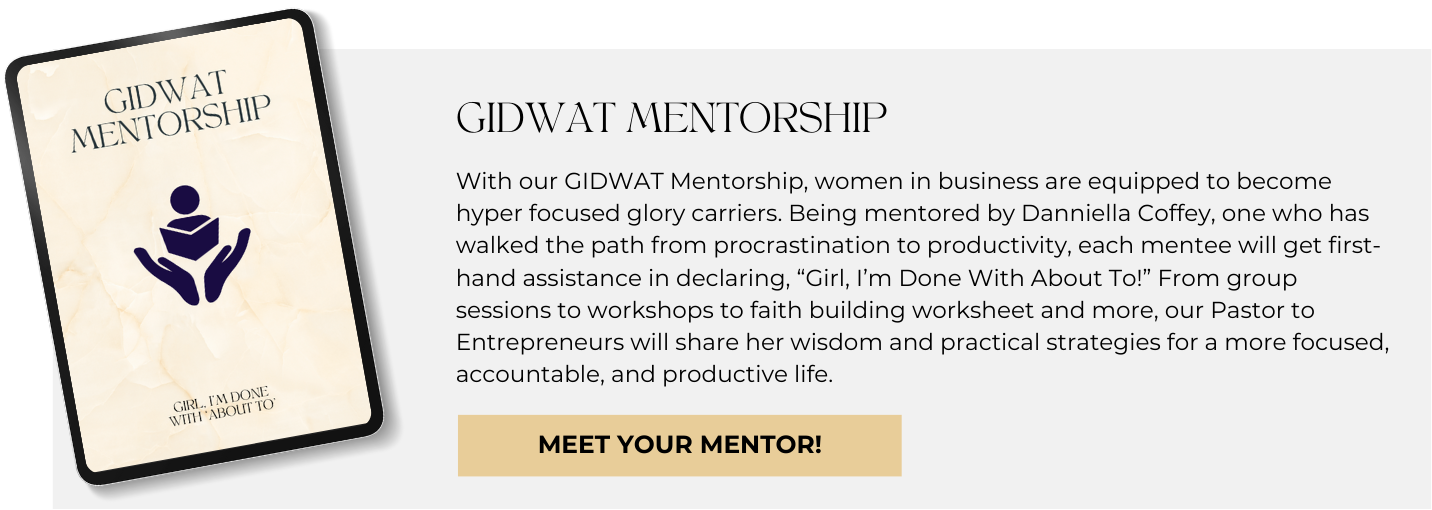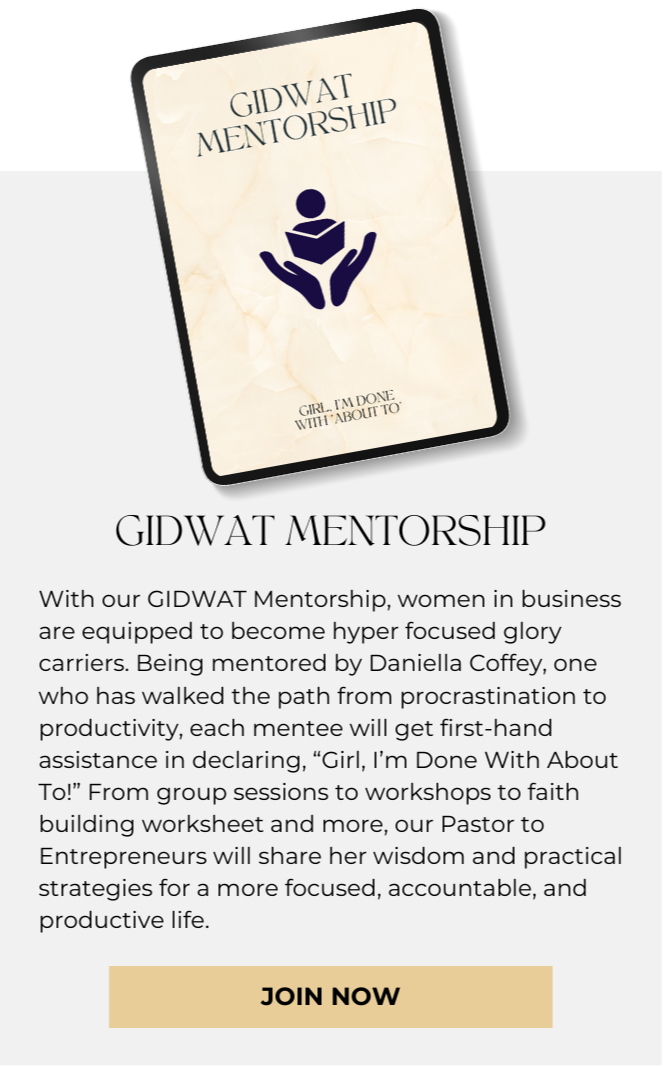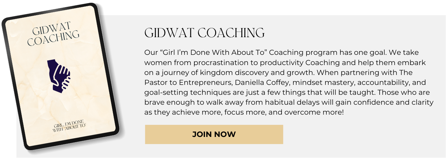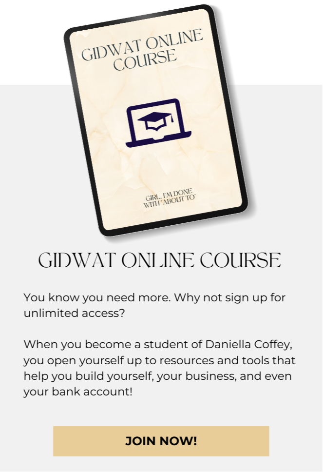 When you get rid of distractions and partner with ACTion, your motto becomes, "Girl, I'm Done With About To!"